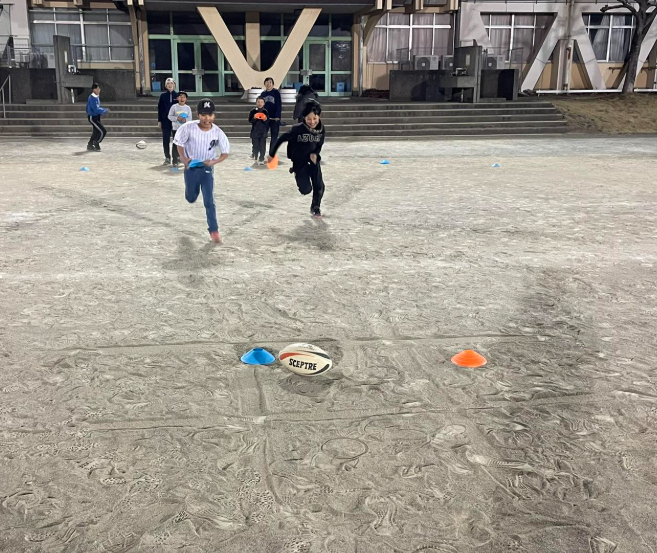 後半は普段やっているタグラグビーではなくタッチラグビーに取り組みました。